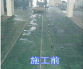 4.用堿洗地面,堿洗后用大量水洗沖地面,徹地洗去地面酸堿,在這過程中,用水磨機(jī)打磨地面,將腐蝕的水泥、油污去掉;